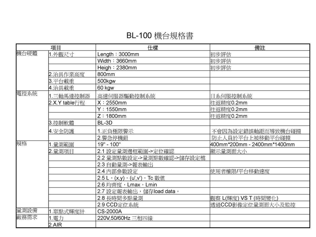 BL-100 100吋背光量測(茂林)規劃書