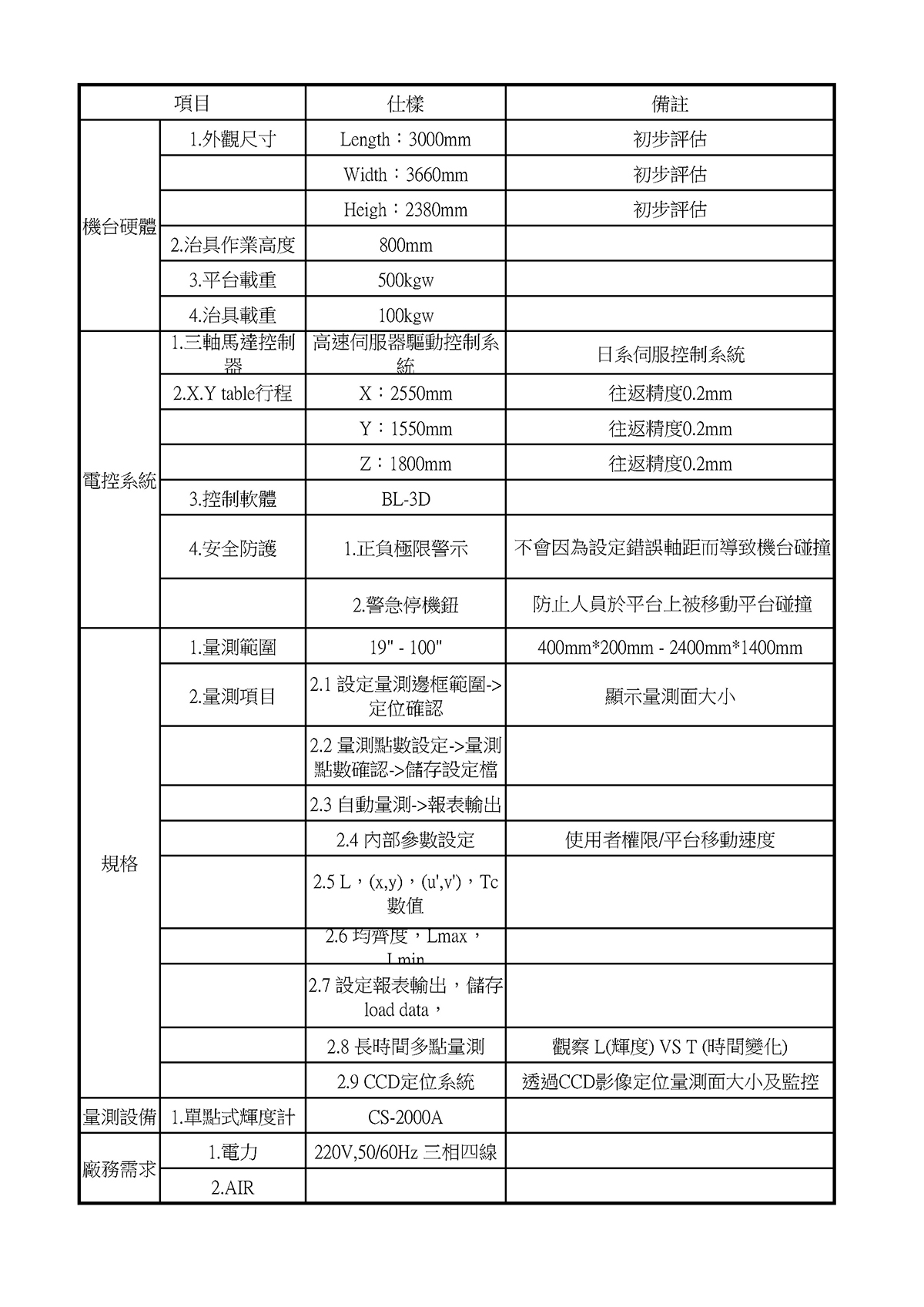 BL-100 100吋背光量測(茂林)規劃書